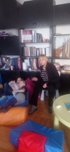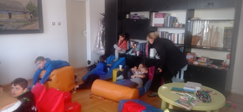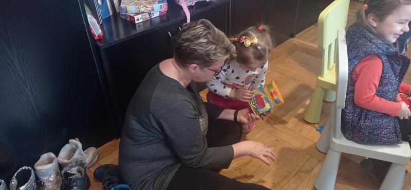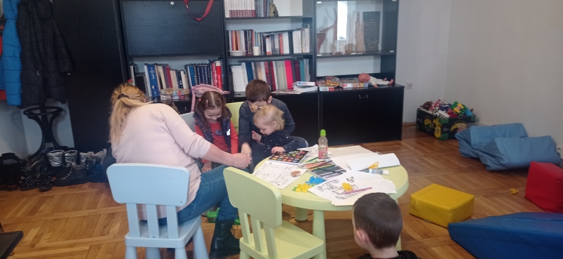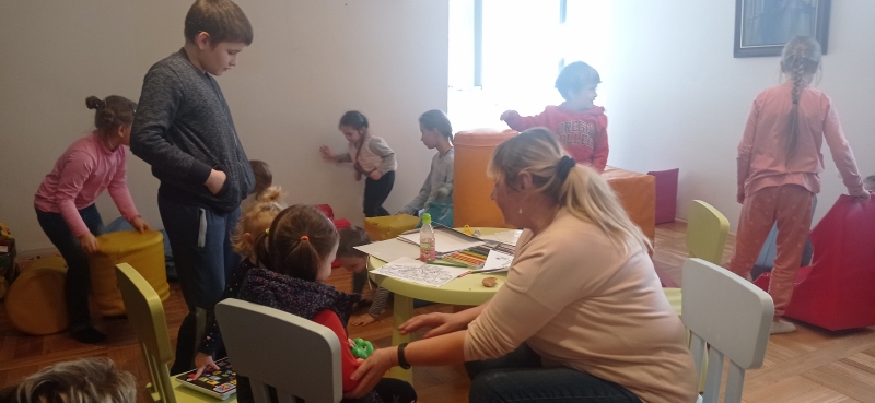 Seniorki z UTW pomagaja matkom z Ukrainy . Opiekują się dziecmi w róznym wieku w czasie gdy mamy ucza się języka polskiego .