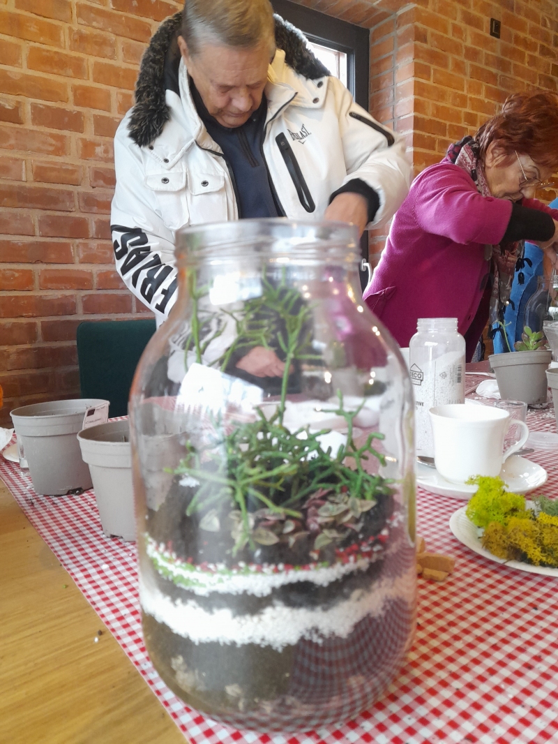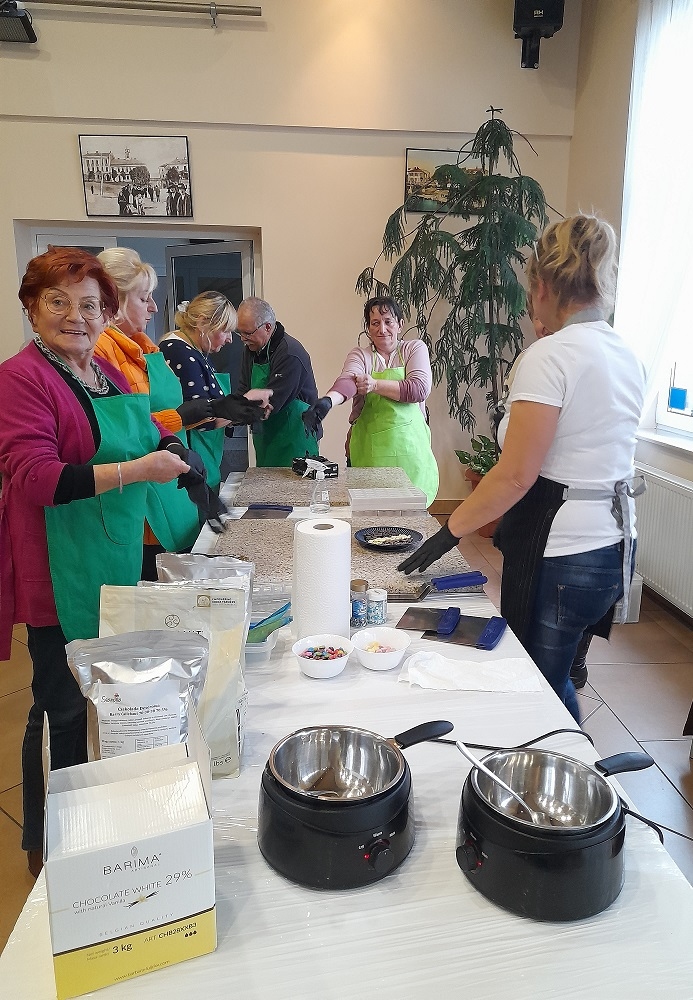 18 listopada sluchacze UTW uczestniczyli razem z przedstawicielami organizacji pozarzadowych z Krynicy uczestniczyli w wyjezdzie studyjnym do Zagrody "Skrawek nieba" gdzie brali udział w ARTETERAPI /tworzyli miniaturowy las w słoiku/. W wizycie stydyjnej w Fundacji Wiedza, Umiejętność, Rozwój Gorlice zobaczyli proces toworzenia wyrobów z czekolady.
