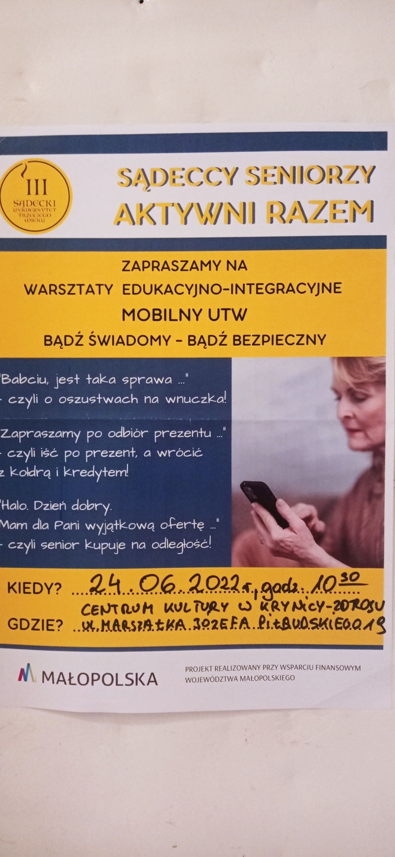 24 czerwca 2022 r. odbyły się warsztaty edukacyjno-integracyjne MOBILNY UTW "BĄDŹ ŚWIADOMY - BĄDŹ BEZPIECZNY" które prowadził