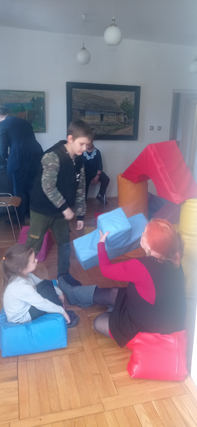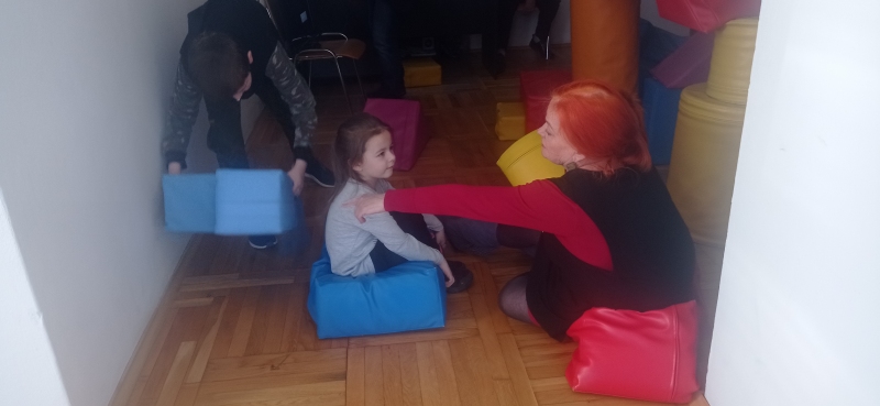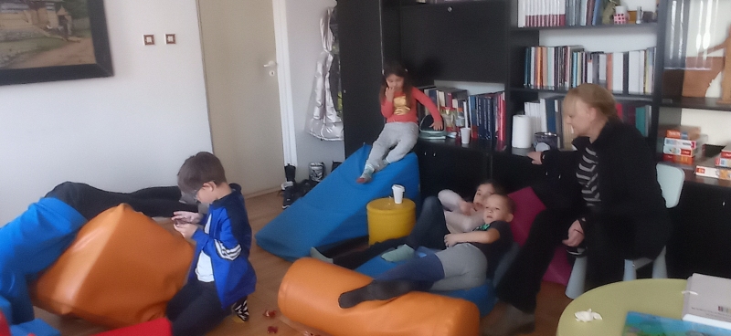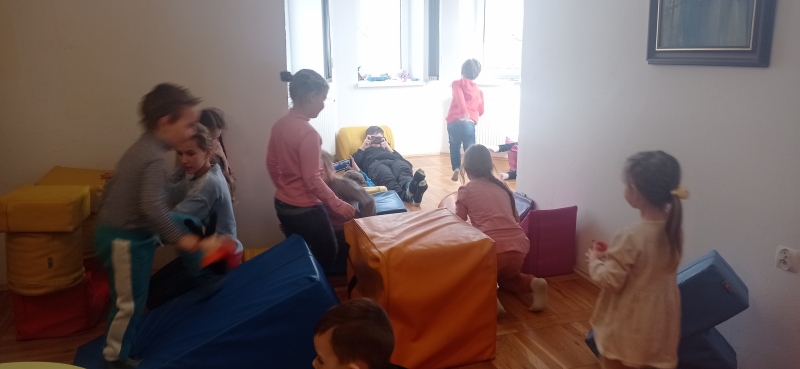 Seniorki z UTW pomagaja matkom z Ukrainy . Opiekują się dziecmi w róznym wieku w czasie gdy mamy ucza się języka polskiego .